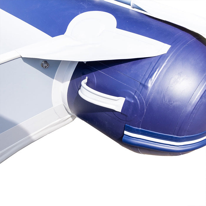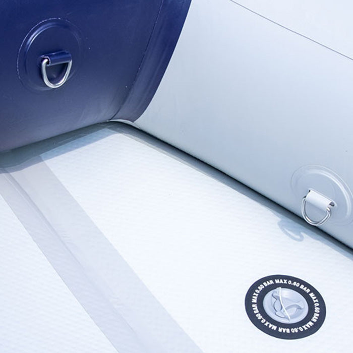 The 330 Air V combines Boatworld’s hallmark innovation with a design tailored for ultimate versatility on the water. Whether it’s fishing, coastal exploration, or leisurely cruising, the V-hull and integrated drop-stitched floor provide exceptional stability and smooth handling. Crafted from 0.9mm, 1100 Denier high-strength PVC in an elegant two-tone finish, this boat is built for durability and style.