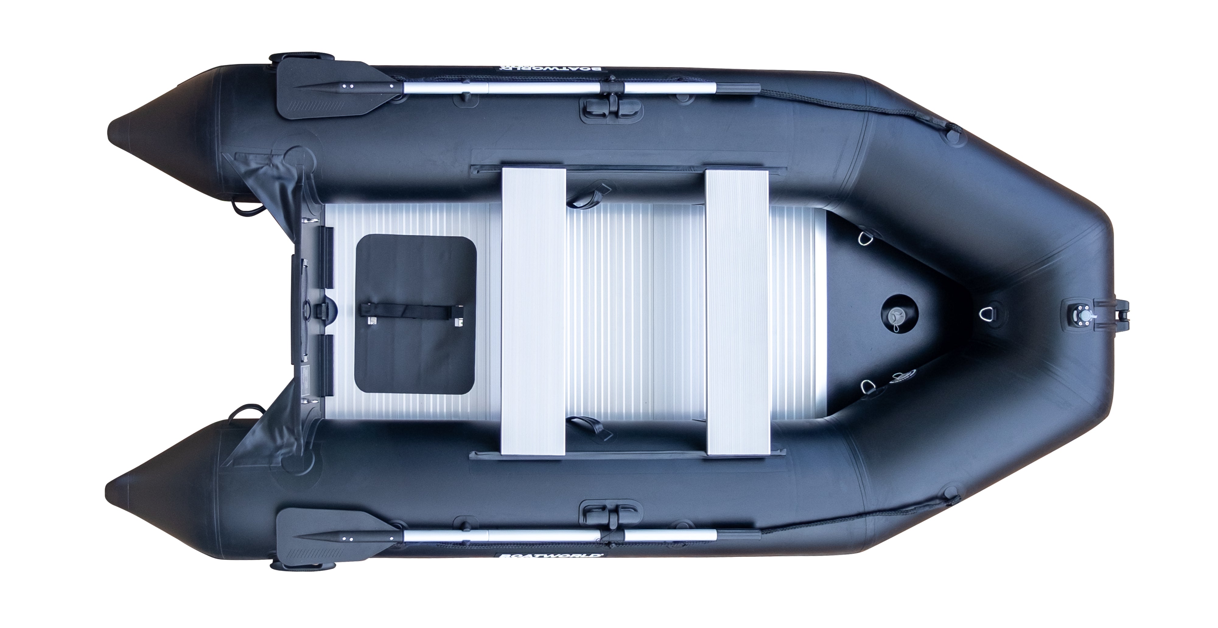 The Boatworld 330 Pro is the ultimate choice for those seeking a durable, high-performance inflatable boat. Featuring a non-slip alloy floor and an inflatable keel, it delivers a "Vee" bottom hull shape for improved stability and quicker planing. Perfect for fishing, cruising, or coastal adventures, this black 330 model is built for reliability and versatility.