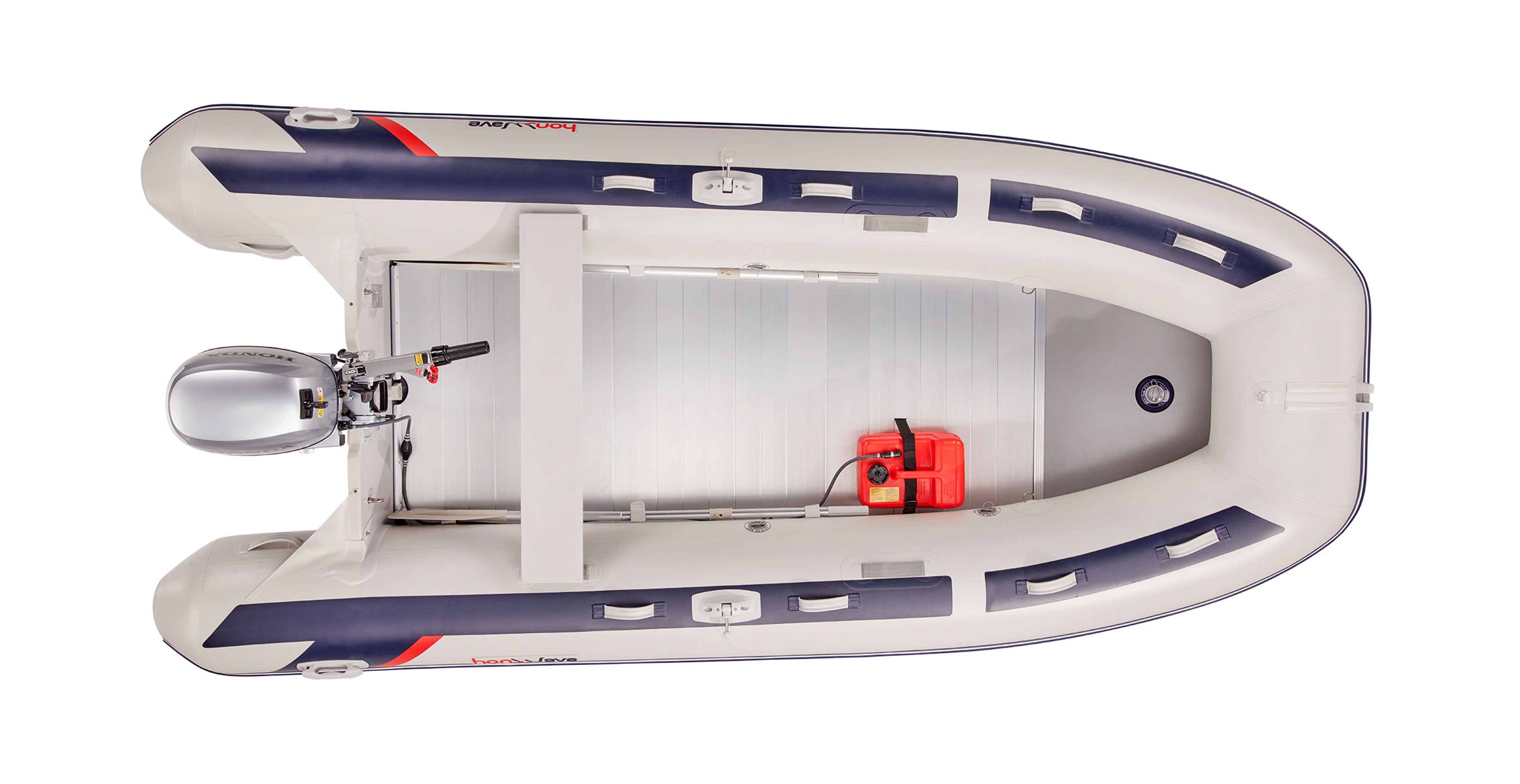 The Honwave Aluminium-Deck T40 AE3 inflatable is designed to deliver exceptional durability, stability, and ease of use for any nautical activity. Constructed from high-quality marine-grade PVC, this model is rugged enough to withstand demanding environments while ensuring smooth and safe cruising with its extra-large buoyancy tubes.