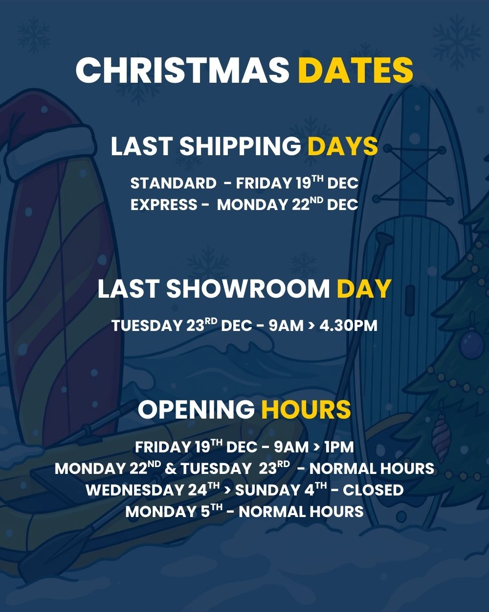 We will be closing our showroom & warehouse on Tuesday, 23rd December and will remain closed until we reopen on Monday, 5th January. Please note: we will also be closing early on Friday, 19th December for our team Christmas Party!