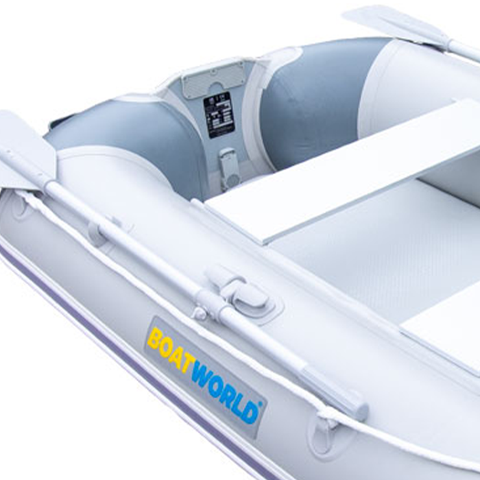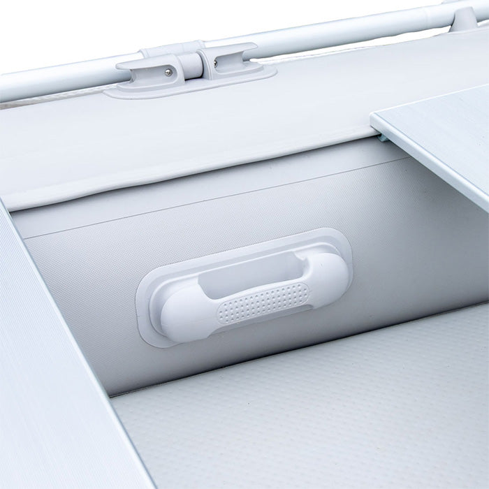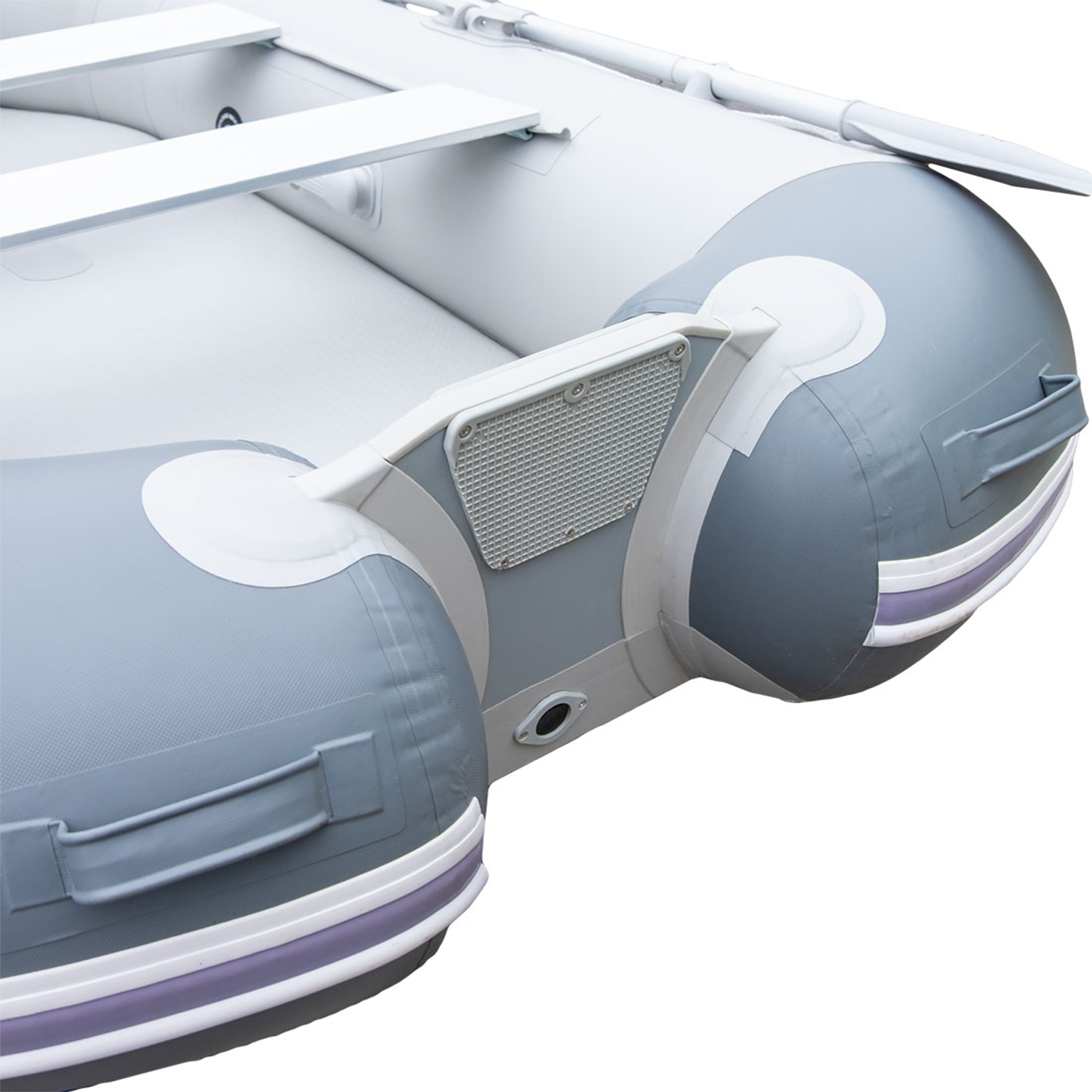 The Boatworld ST 240 takes everything you love about a round tail inflatable and refines it into a smarter, more stable design. With its clever bonded short transom nestled neatly between the oversized stern tubes, the ST 240 delivers excellent on-water balance—especially when running a motor—while remaining compact enough to stow in smaller lockers or campervans. At 25.4kg, it’s light enough to carry solo, yet tough enough to take up to a 4hp engine.
